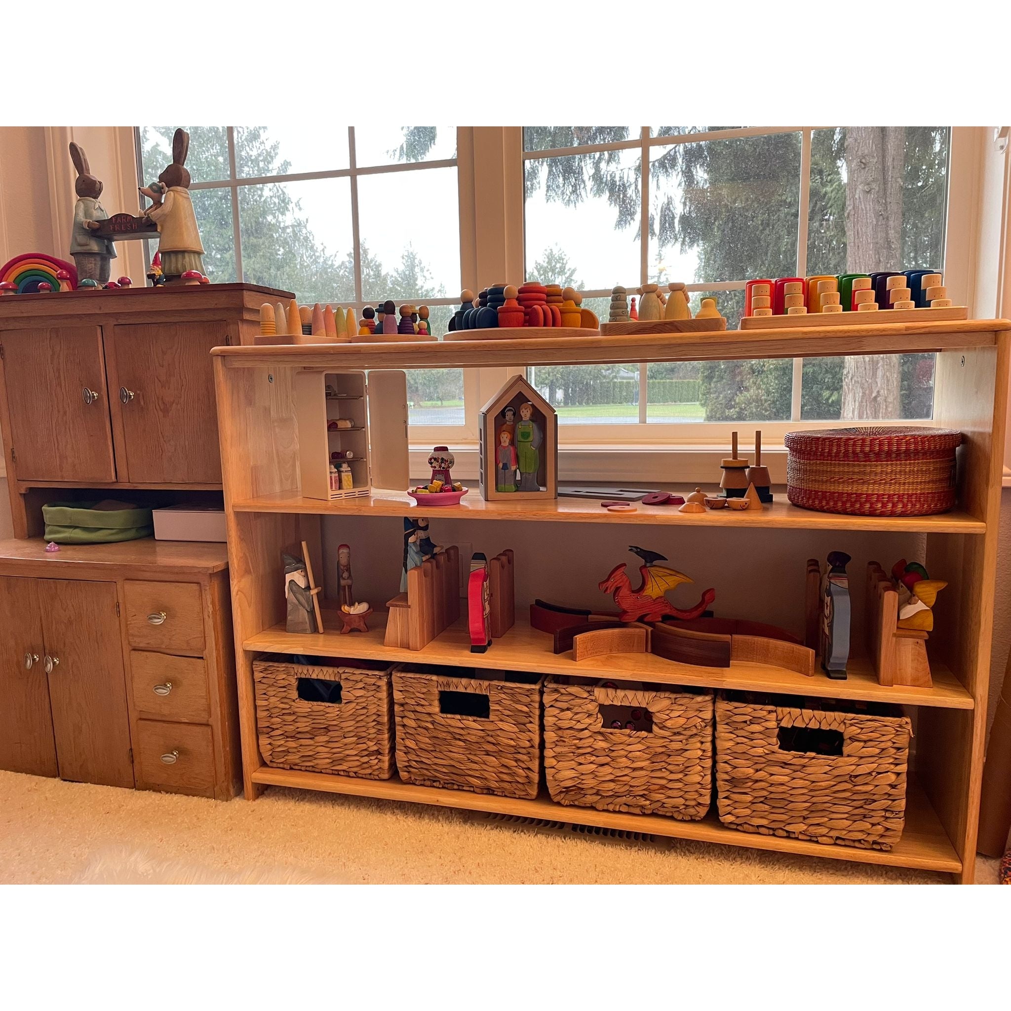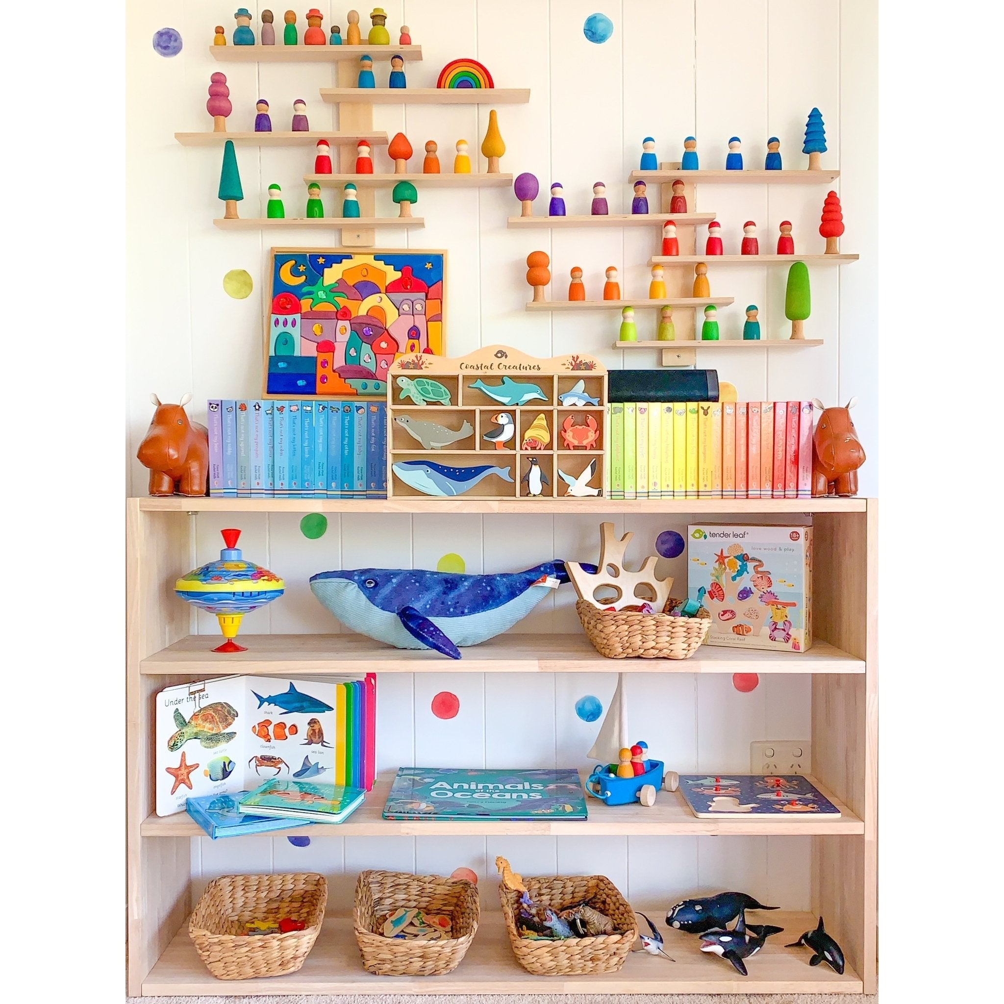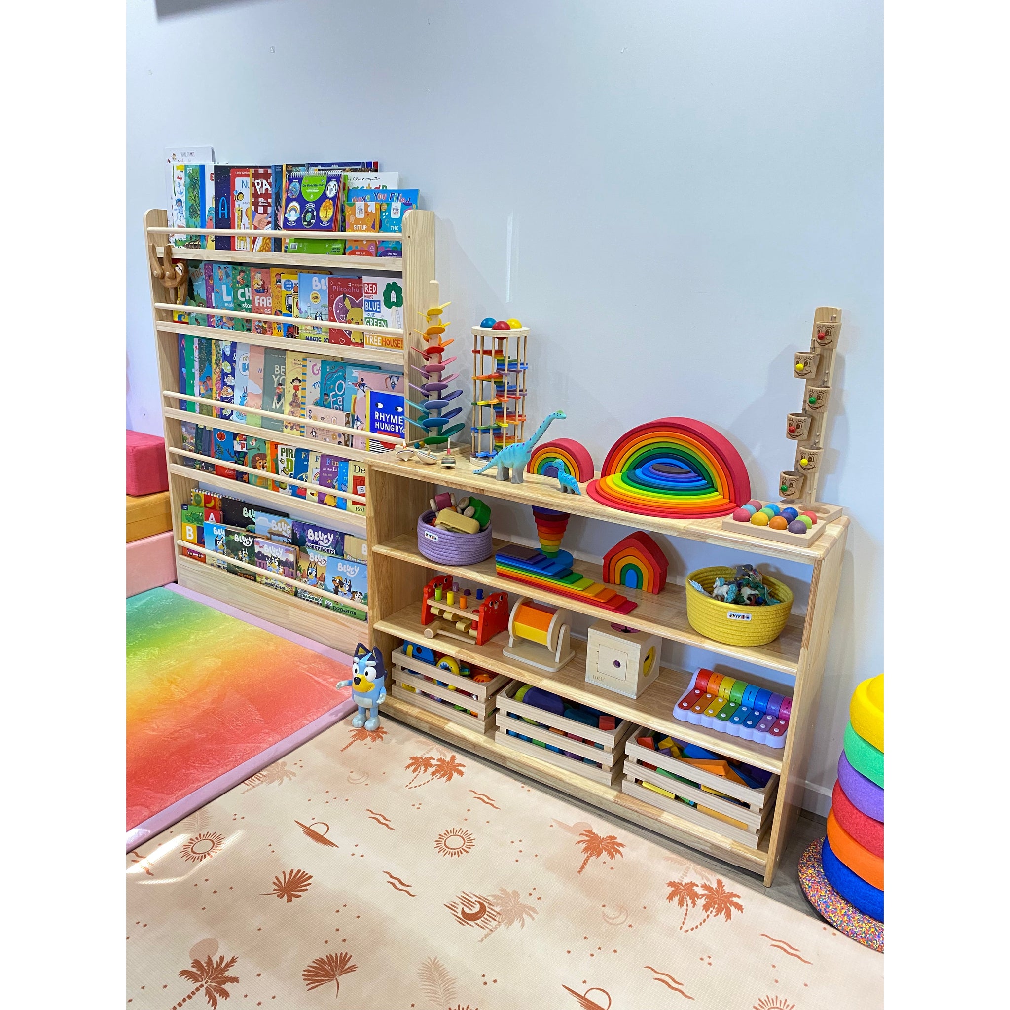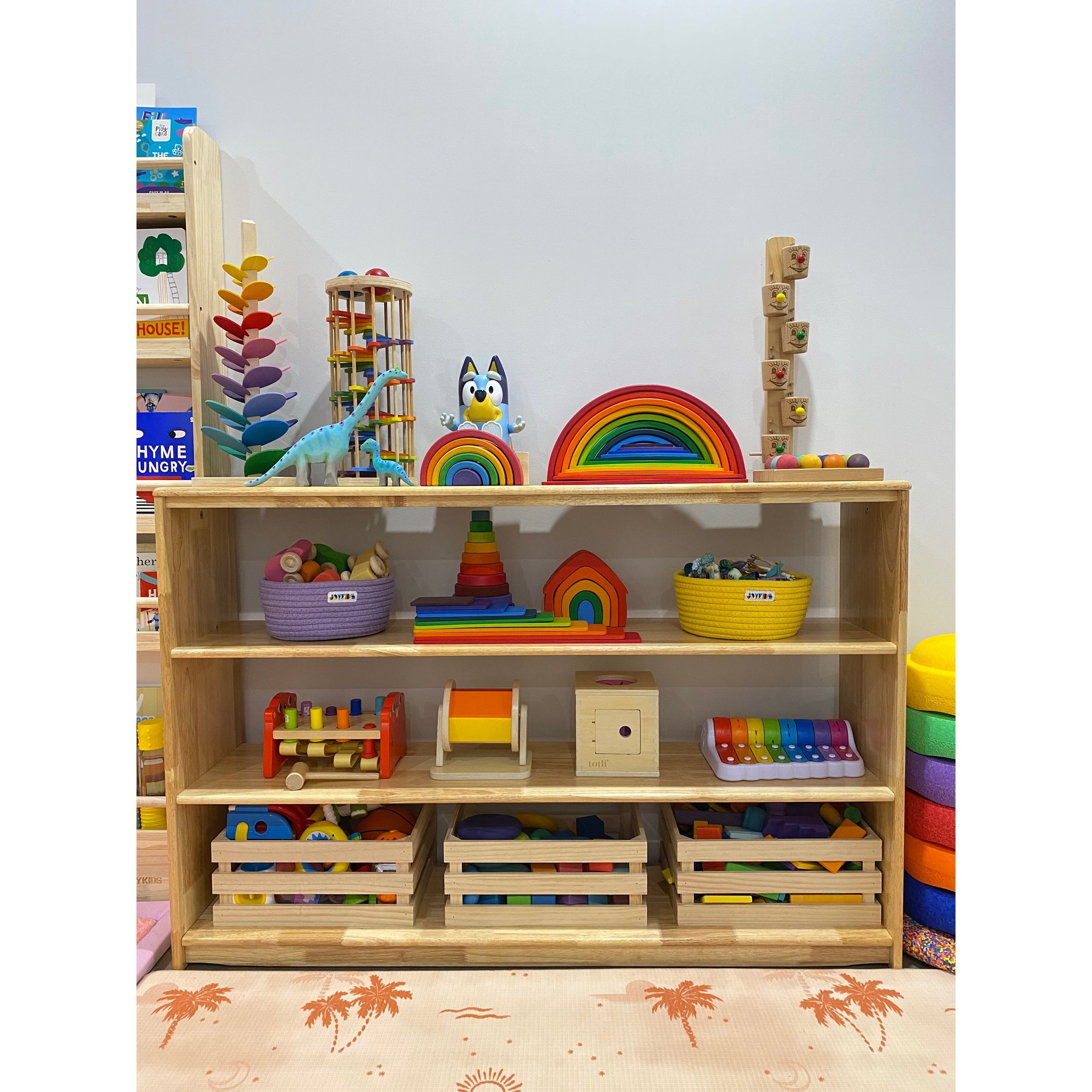 A sturdy, Montessori-style shelf designed for tidy play spaces and beautiful displays, making it the perfect storage solution for playrooms, kinders and classrooms.
