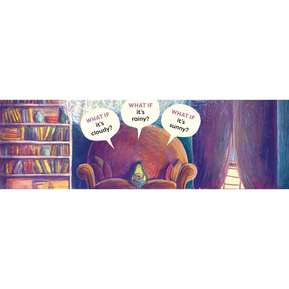 Avi is an anxious avocado. He worries about EVERYTHING always wondering what-if? what-then? what's going to happen? and ends up avoiding everything that frightens him. Until one day when he hears an unusual sound outside his kitchen window.... what possibly could that THUMP! THUIMP! THUD! be? Fear swells in the pit of his stomach, but it occurs him. What is the worst thing that could happen if he just dares himself to face his fears?