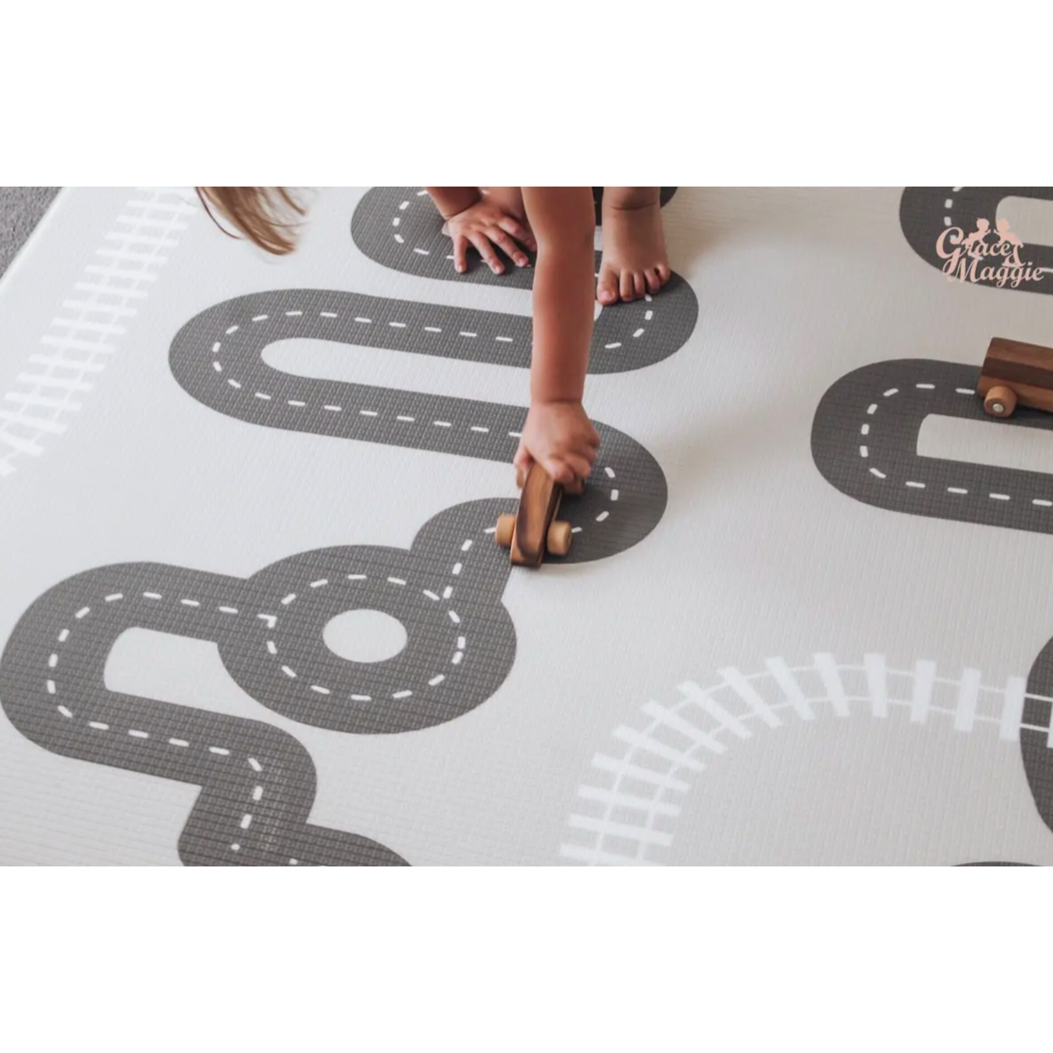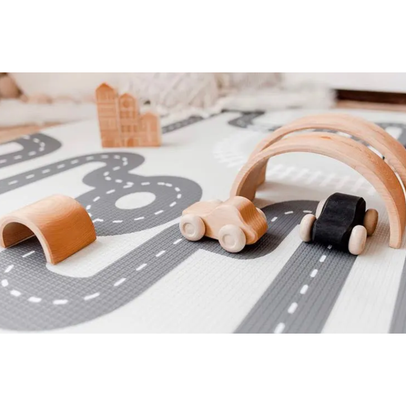 On side B you'll find a minimalist track design for imaginative small world play. Build a rural town with farmhouses or construct a concrete jungle! Your kids will only be limited by their imagination! The colour palette on this side is bold enough to create interest whilst being neutral enough to look great in any styled living space.
