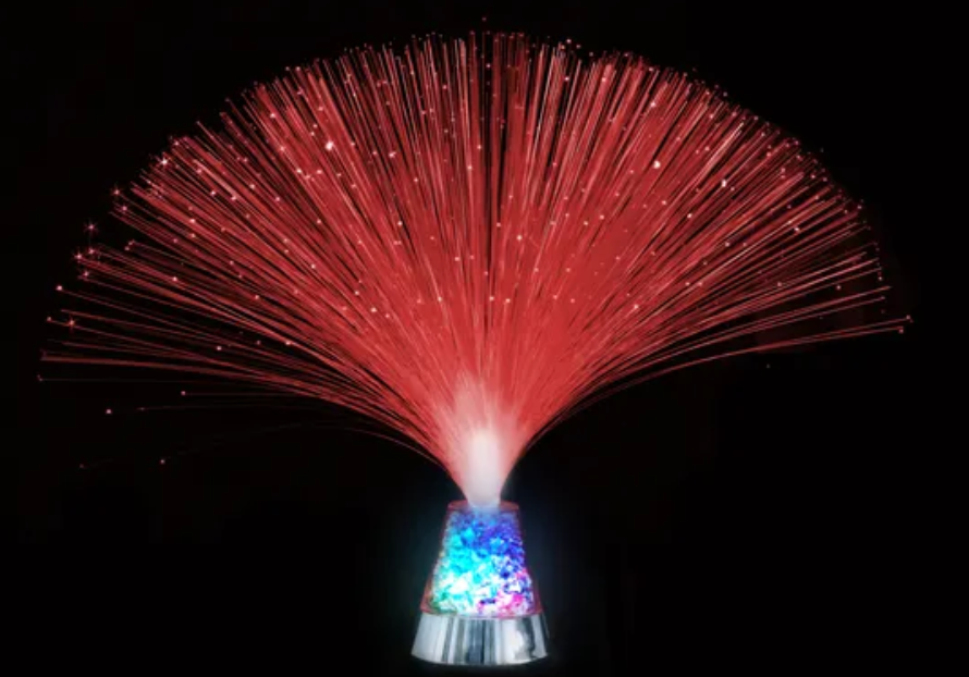The Fiber Optic Lamp has a metallic light up base, with 8 slow changing colours that emit through the fibers: red, green, blue, white, yellow, light blue and purple.