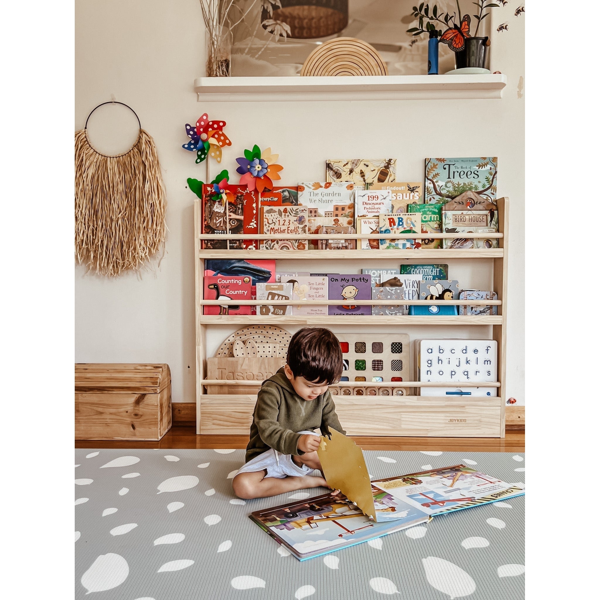 A beautiful, space-smart bookshelf that puts stories on display - perfect for bedrooms, playrooms and classroom reading corners. The front-facing design helps kids see their favourites at a glance, reach independently, and keep shelves tidy.