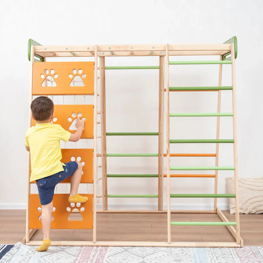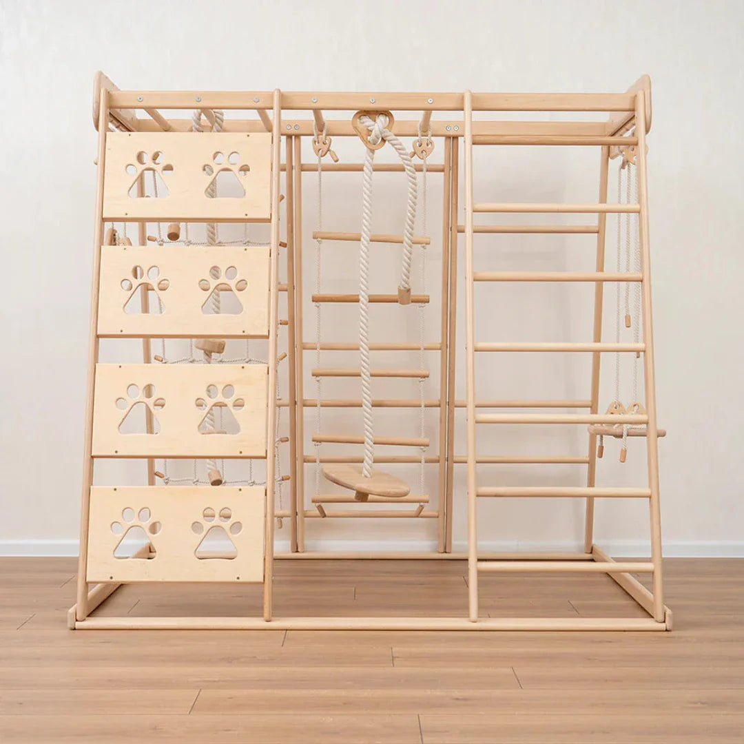 Designed with Montessori principles in mind, the Home Climbing Playground is the perfect indoor jungle gym for energetic little ones. Whether it's climbing, swinging, or sliding, this beautifully crafted wooden playset keeps children active while nurturing coordination, confidence, and cognitive development – all through play.