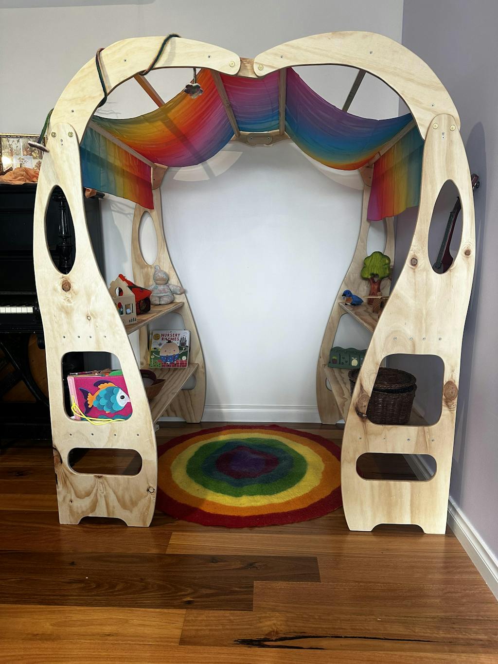 Measuring 180cm x 90cm, Play Silkies Jumbo provide ample space for kids to stretch their imagination and creativity. At 180cm x 90cm, Play Silkies Jumbo Silks are large enough to create a comfortable reading nook, a fun fort, or even be used as a dress-up costume! They’re designed to fit most Pikler climbing triangles and play couches, making them a versatile addition to any play space.