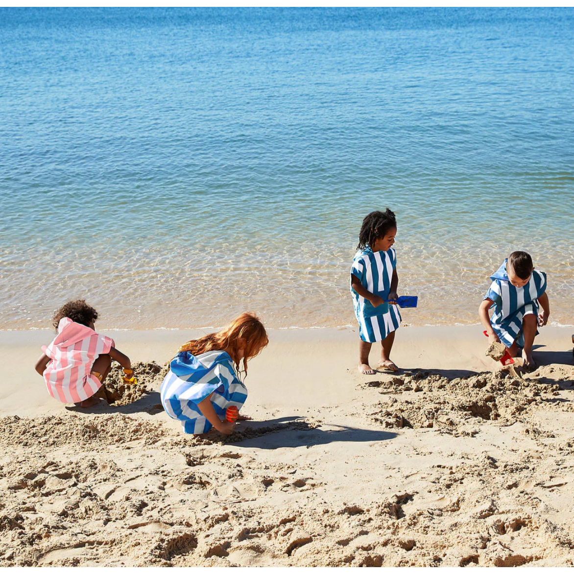 Each poncho dries 3 times faster than normal towel material - so no more soggy smells in the back of your car. They’re also compact & lightweight, so you can save room in your kids’ backpack, swim bag or suitcase.