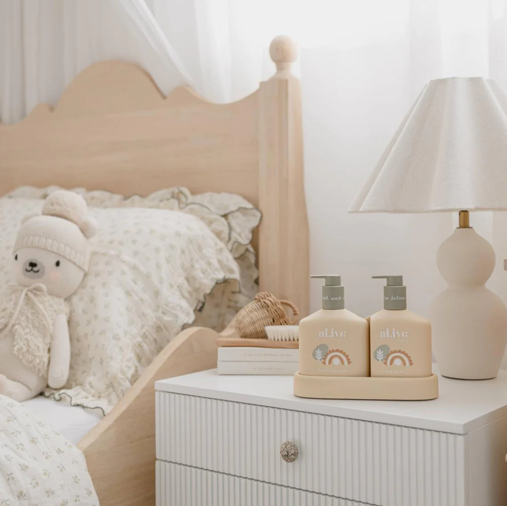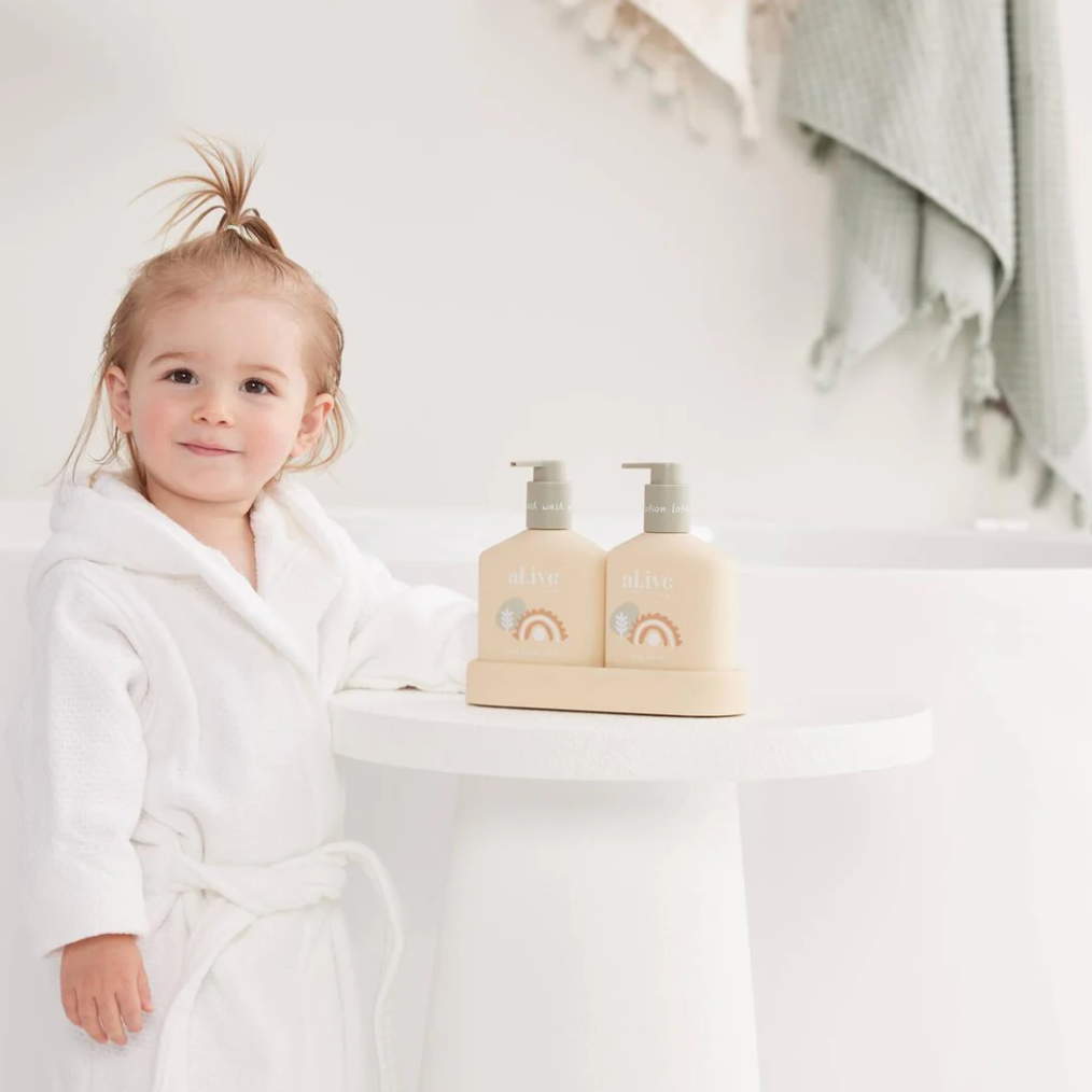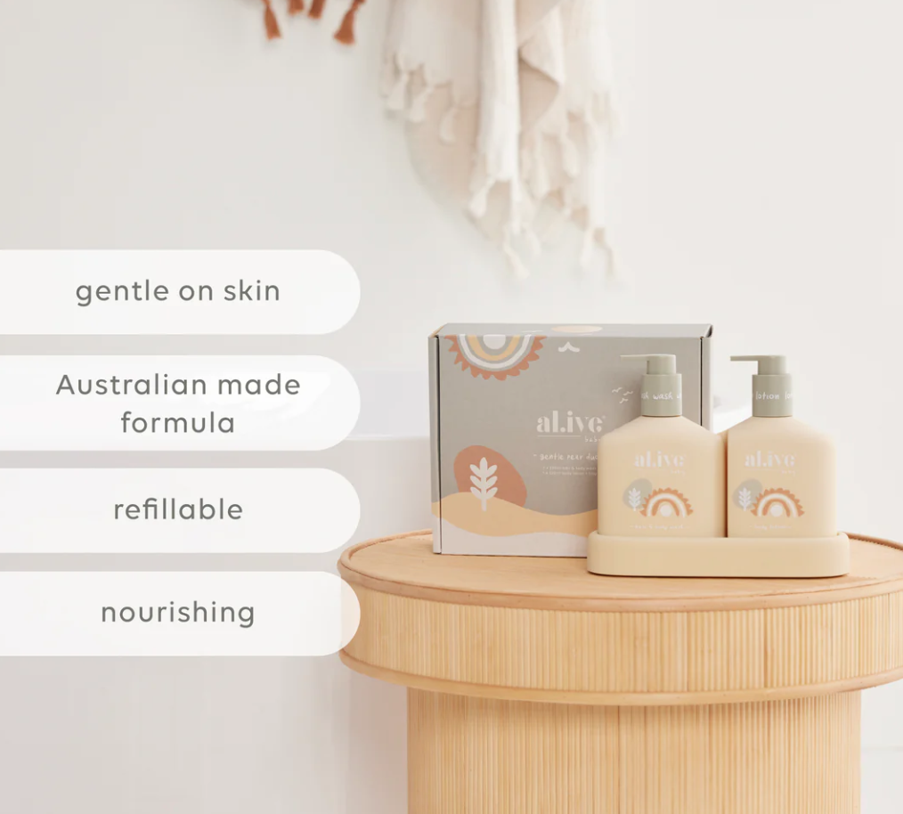 Suitable for babies and children, the Baby Hair and Body Wash in Gentle Pear is a much-loved product that now comes with a new look! The new butter yellow bottle and playful illustrations make it a fun addition to any bath time routine. This two-in-one bath wash and shampoo product is specially formulated to gently cleanse and nourish baby's skin and hair, and with the easy pump lids, bath time has never been easier.