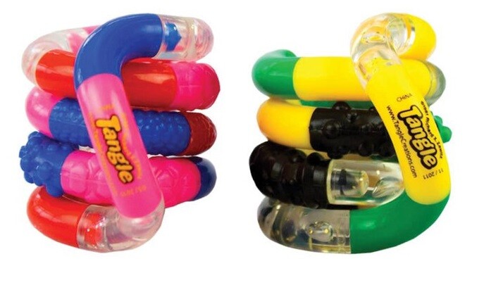 The Tangle Jr. shines with bold, bright colors and is available in three playful color combinations, making it a fun, unique, and stylish fidget toy for both kids and adults to twist, wear, and enjoy.